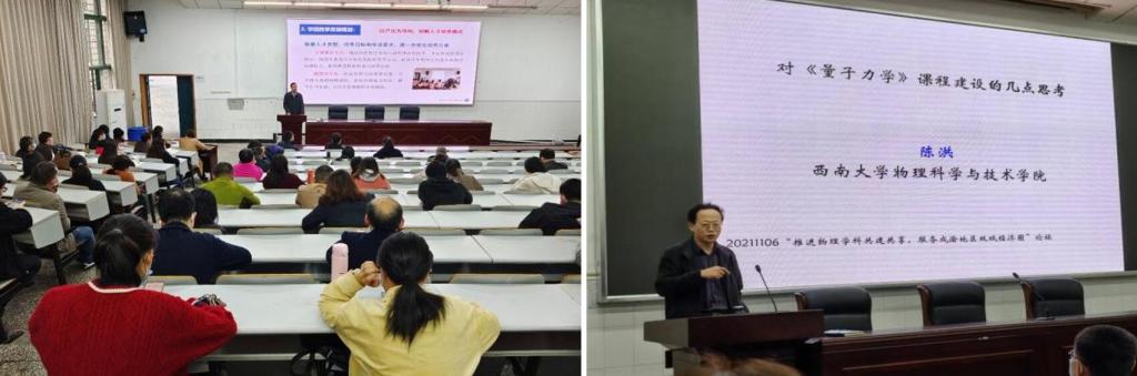 接下来,成人视频 陈洪教授以《量子力学》课程为例开展了第二个环节:说课程建设。陈洪教授提到,十九届五中全会以来,中央提出了的“三新一高”、“三基建一水平”,强调课程是人才培养的核心要素,课程建设的基本要求是“两性一度”,学生能力培养与课程目标设计是教师主导下的教与学的统一。教学中,不仅要将最新研究成果融入教学,还要融入课程思政元素,深度挖掘提炼专业知识体系中所蕴含的思想价值和精神内涵,科学合理拓展专业课程的广度、深度和温度,从课程所涉专业、行业、国家、国际、文化、历史等角度出发,增加课程的知识性、人文性,提升引领性、时代性和开放性。陈洪教授提倡教学中应将问题导向式互动教学和现代信息技术的应用相结合,可以采用“三助式”教学法,将学生真正放在教育的主体地位,课堂真正成为了学生自主学习、合作学习和探究学习的场所。