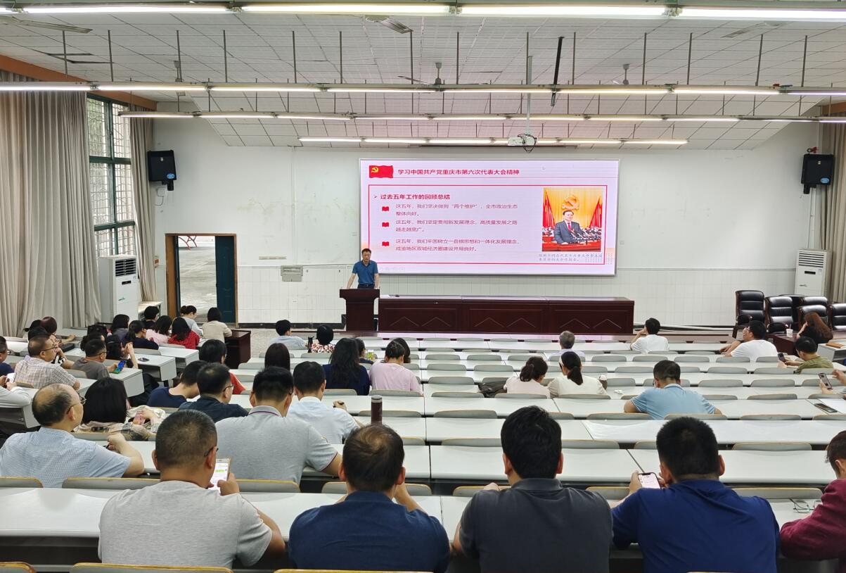 首先,李余廷书记带领大家学习了中国共产党重庆市第六次代表大会精神。他指出,中国共产党重庆市第六次代表大会,是在党的二十大即将召开,我市奋力推进社会主义现代化建设新征程关键时期召开的一次重要会议。全会聚焦把习近平总书记殷殷嘱托全面落实在重庆大地上这条主线,紧扣习近平总书记对重庆提出的营造良好政治生态,坚持“两点”定位、“两地”“两高”目标、发挥“三个作用”和推动成渝地区双城经济圈建设等重要指示要求,系统总结了过去五年重庆的发展成绩,深刻回答了今后五年建设什么样的重庆、怎样建设重庆的战略性问题,并提出了三项重大任务、六个方面目标,科学谋划了未来一个时期重庆高质量发展、高品质生活的美好蓝图。他强调,全会充分体现了以习近平同志为核心的党中央推动重庆新时代高质量发展、创造巴渝儿女高品质生活的时代主题,是重庆全面建设社会主义现代化新征程发出的动员令和冲锋号。接下来,成人视频 要把学习宣传贯彻重庆市第六次党代会精神作为当前和今后一个时期的重要政治任务,多层次、多角度抓好宣传宣讲,迅速将第六次党代会的精神实质传达到每一位师生,全力以赴推动市第六次党代会精神在成人视频 落地落实、见到实效,以实干实绩迎接党的二十大胜利召开。