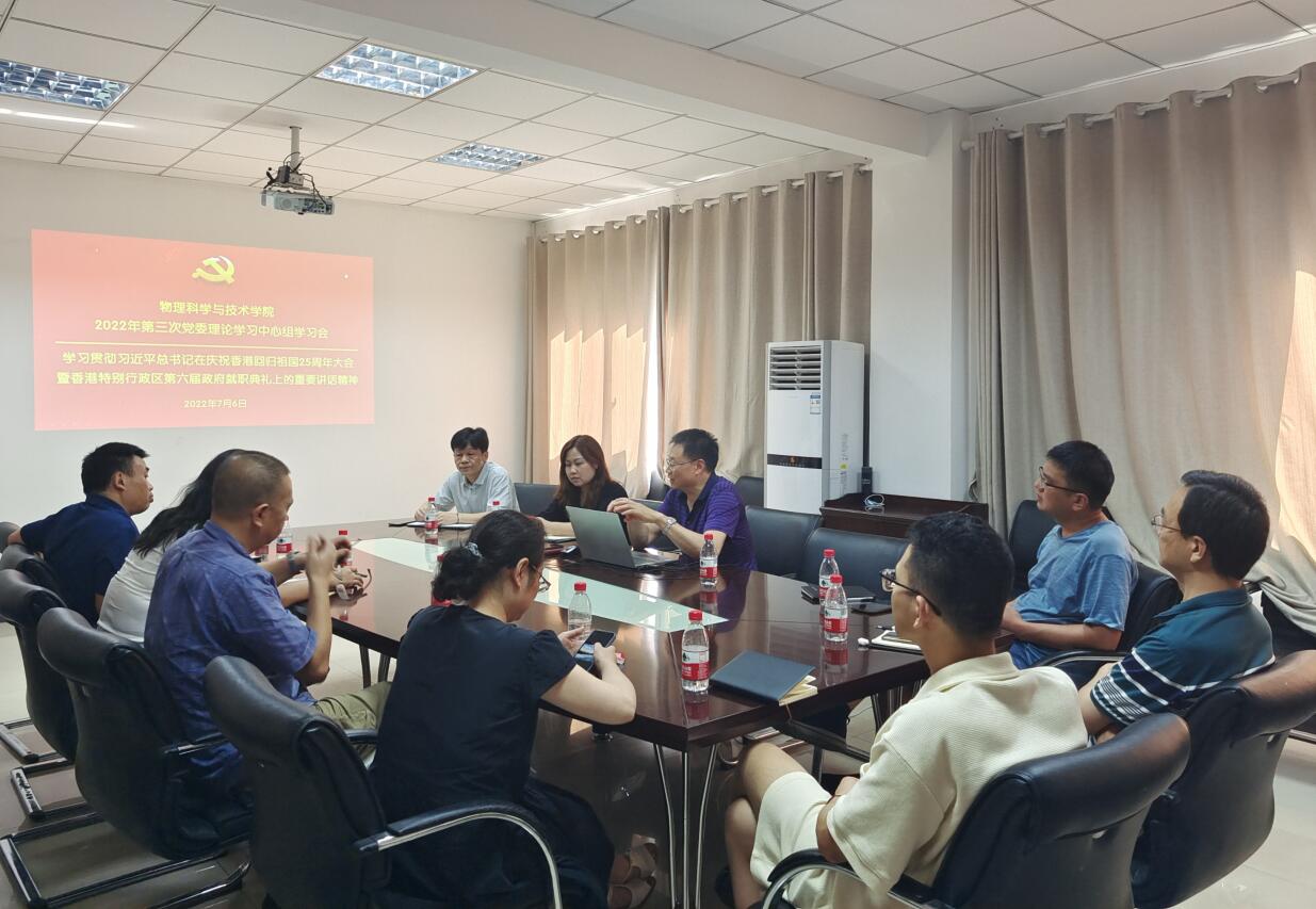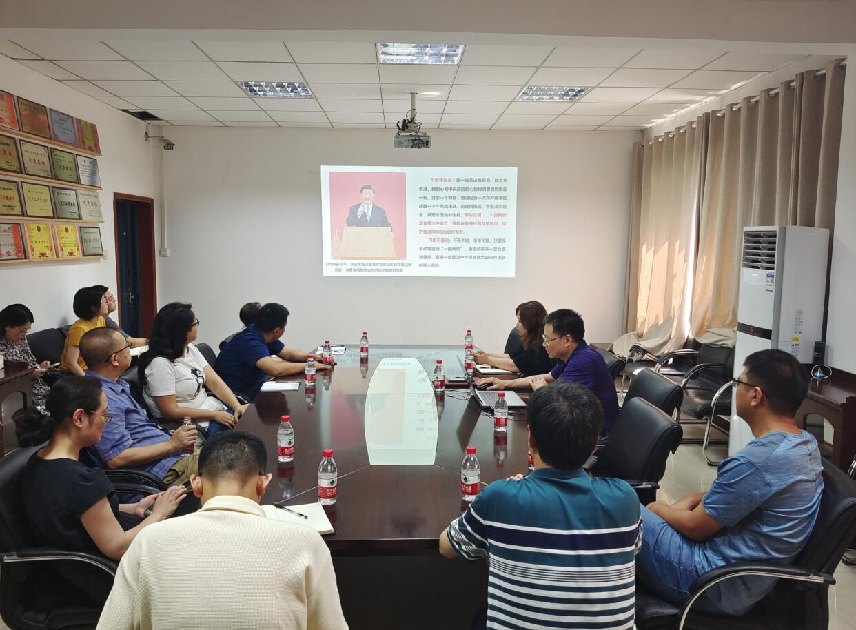 7月6日下午,成人视频 在二楼会议室举行2022年第三次党委理论学习中心组(扩大)学习会,专题学习习近平总书记在庆祝香港回归祖国25周年大会暨香港特别行政区第六届政府就职典礼上的重要讲话精神,交流心得体会。成人视频 党委理论学习中心组全体成员、党委委员、党支部书记参会,成人视频 党委书记李余廷主持会议。